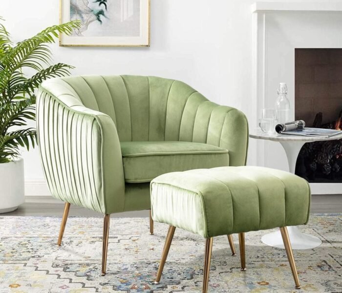 A soft, modern accent chair upholstered in calming sage fabric. Its clean silhouette and natural wood frame bring a gentle, nature-inspired touch to any room.